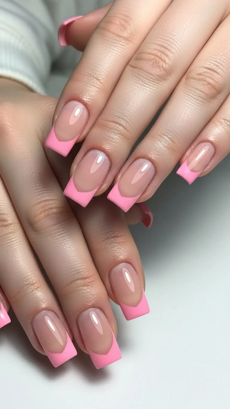 Pink jelly nails create a see-through, glossy effect that feels playful and light for Valentine looks. The translucent finish adds depth while keeping color soft. This style looks especially good in natural light, where the jelly effect becomes more noticeable. Jelly polish or sheer pink gel works well for DIY versions. Simple heart accents or glitter add detail without disrupting clarity. Smooth application is key to avoid streaks. This look pairs well with casual outfits and photographs beautifully in close-up shots.